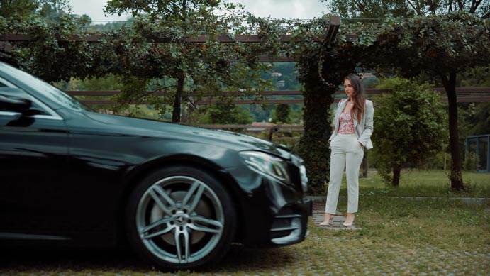 Auto nere Mercedes-Benz, autisti eleganti e discreti, e un servizio preciso e puntuale per sposi, famiglie e invitati.